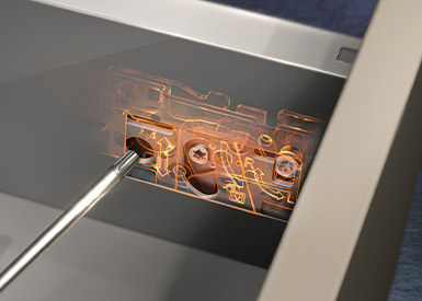 El perfil fino tiene una línea distintiva en la parte inferior que crea un atractivo reflejo de la luz. Las transiciones continuas caracterizan al diseño refinado para módulos extraíbles de apariencia uniforme. Los componentes metálicos y un concepto de colores universal garantizan una apariencia sofisticada.