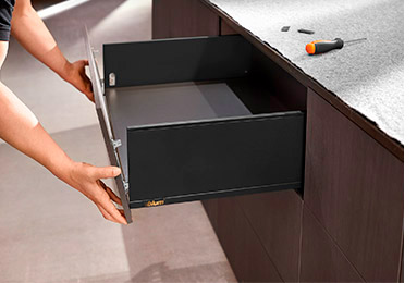 El sistema box LEGRABOX cumple los más requisitos más exclusivos en cuanto a la personalización y el diseño. Los fabricantes podrán diseñar sus propios cajones con perfiles delgados y elegantes y numerosas opciones de diseño extraordinarias.