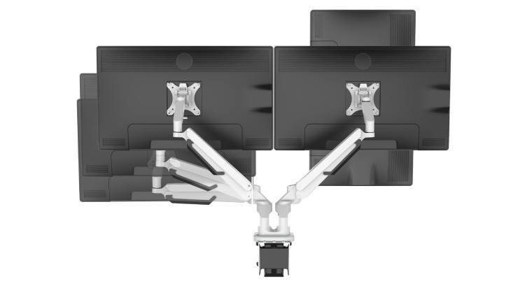 Cada brazo cuenta con un pistón de gas que le permite soportar tabletas, monitores y portátiles entre 2 a 9 kg de carga, el diseño articular del brazo le permite una fluidez ofreciendo al usuario la posibilidad de controlar sus pantallas con un simple movimiento dactilar.