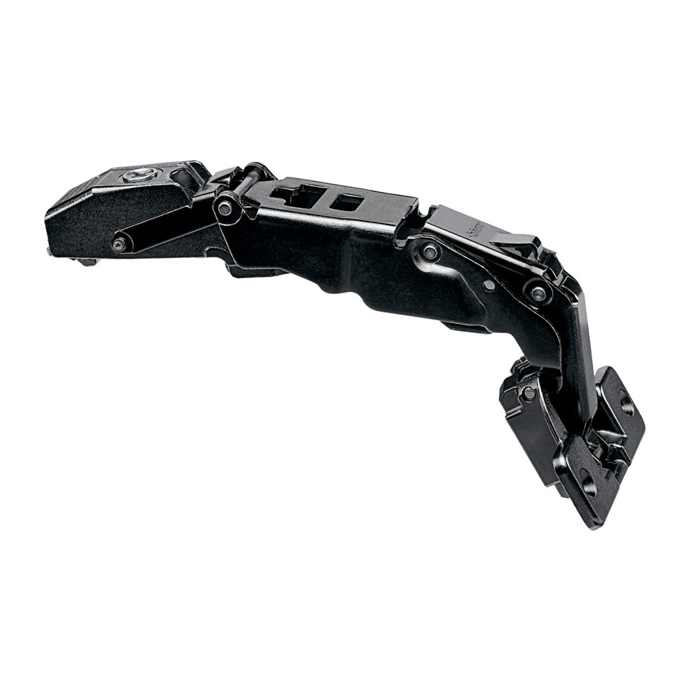 La Bisagra CLIP top 155°, sin muelle, acabado negro onix, cubrimiento total, acabado níquel, concentra una técnica innovadora, el diseño reconocido internacionalmente y la comodidad de movimiento en un espacio muy reducido. CLIP top es sinónimo de gran comodidad de ajuste y montaje, funcionamiento confiable y diseño atractivo.