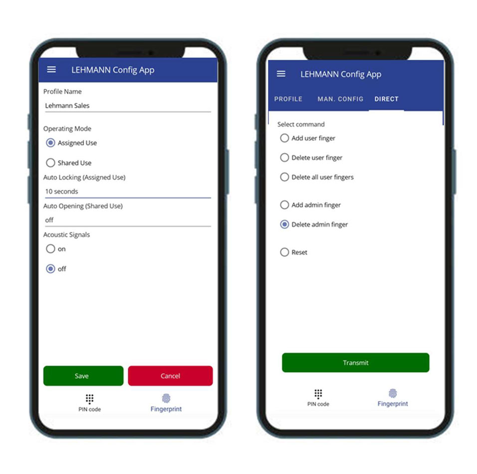 • Configuración mediante ‘dedo admin‘ o con la LEHMANN Config APP