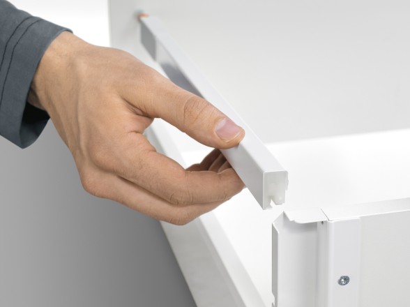 Galería longitudinal TANDEMBOX antaro para aplicar en los laterales del cajón, la tecnología de BLUM permite que la instalación del producto sea más fácil y práctica.