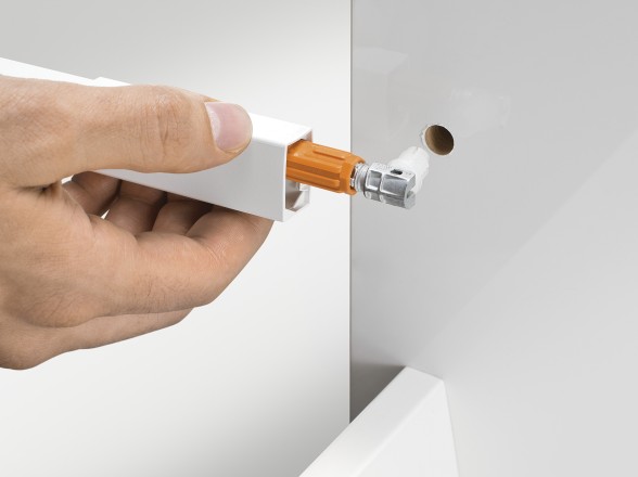 Gracias a la técnica INSERTA, el guardacuerpo y el frente pueden unirse sin herramientas, el guardacuerpo se monta con clip en la trasera del cajón en un solo movimiento, el ajuste de la inclinación directamente en el cabezal del guardacuerpo garantiza un juego de puerta preciso y óptimo.