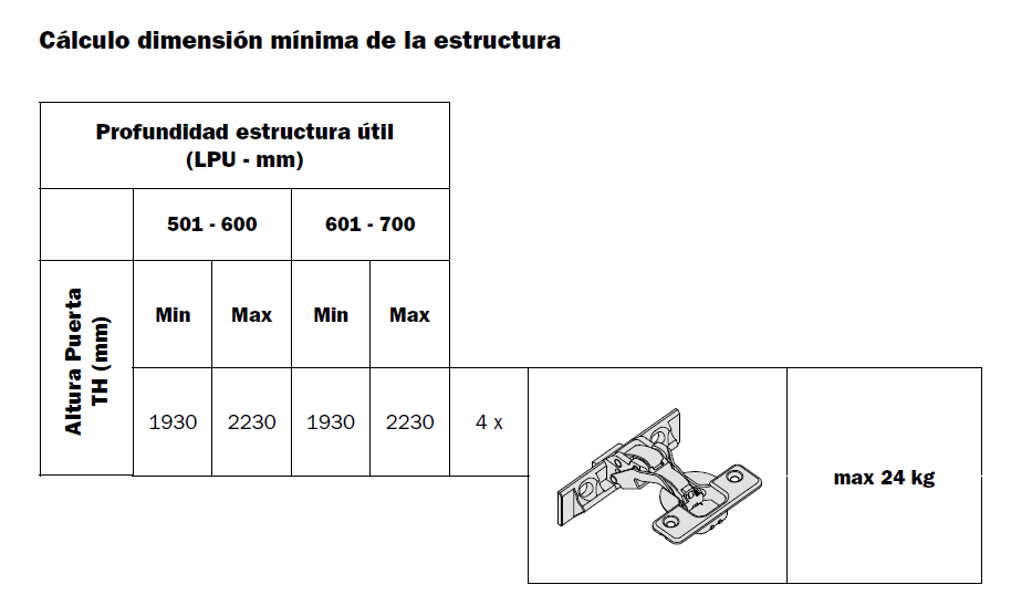 | Espesor de la puerta | 18 a 30 mm |