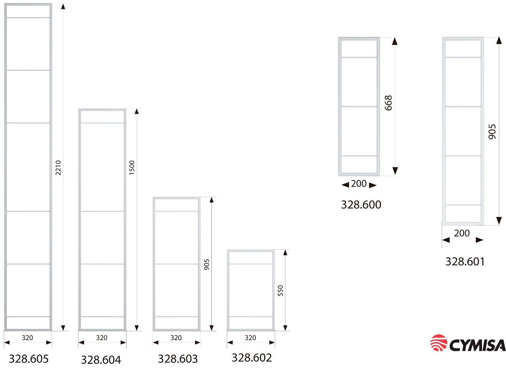 Alto 2210 mm / 1500 mm / 905 mm / 668 mm / 550 mm
