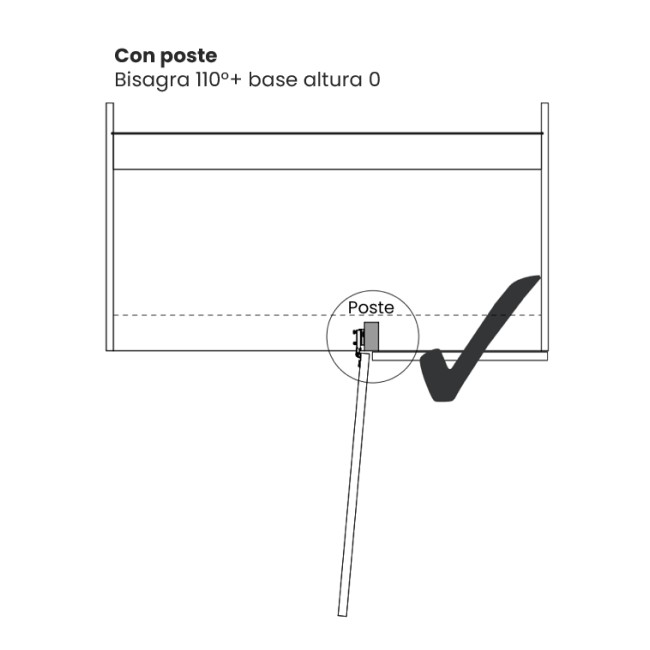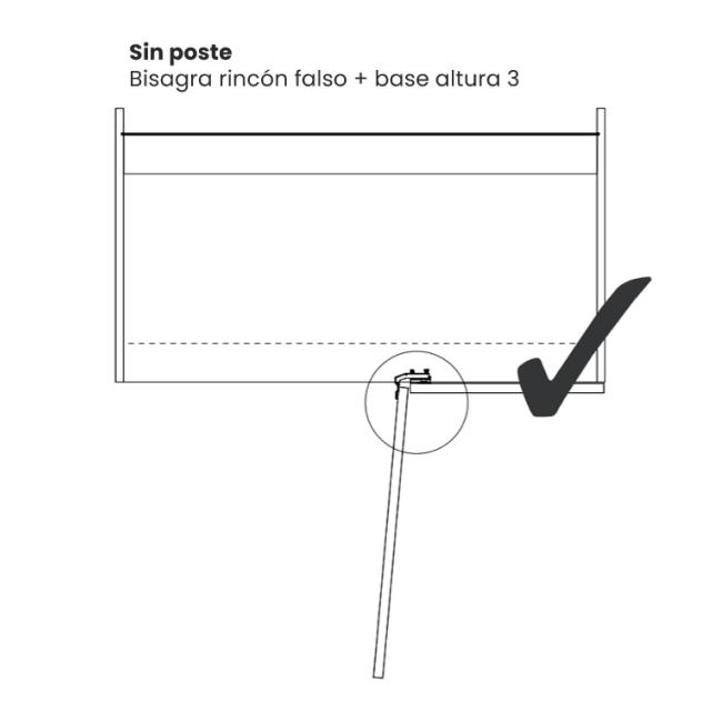 Se recomienda utilizar las Bisagra CLIP top BLUMOTION 95° para rincón falso, recubrimiento interior, con muelle para presión  la bisagra 79B9580 con la base 173H7130.