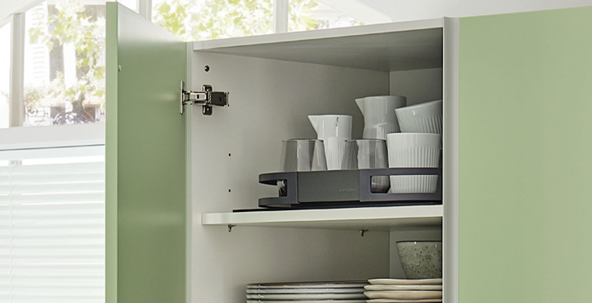 El movimiento giratorio le ofrece en todo momento una visión completa del contenido del armario, lo que resulta especialmente útil en alturas de armario superiores a la zona de trabajo ergonómicamente accesible.