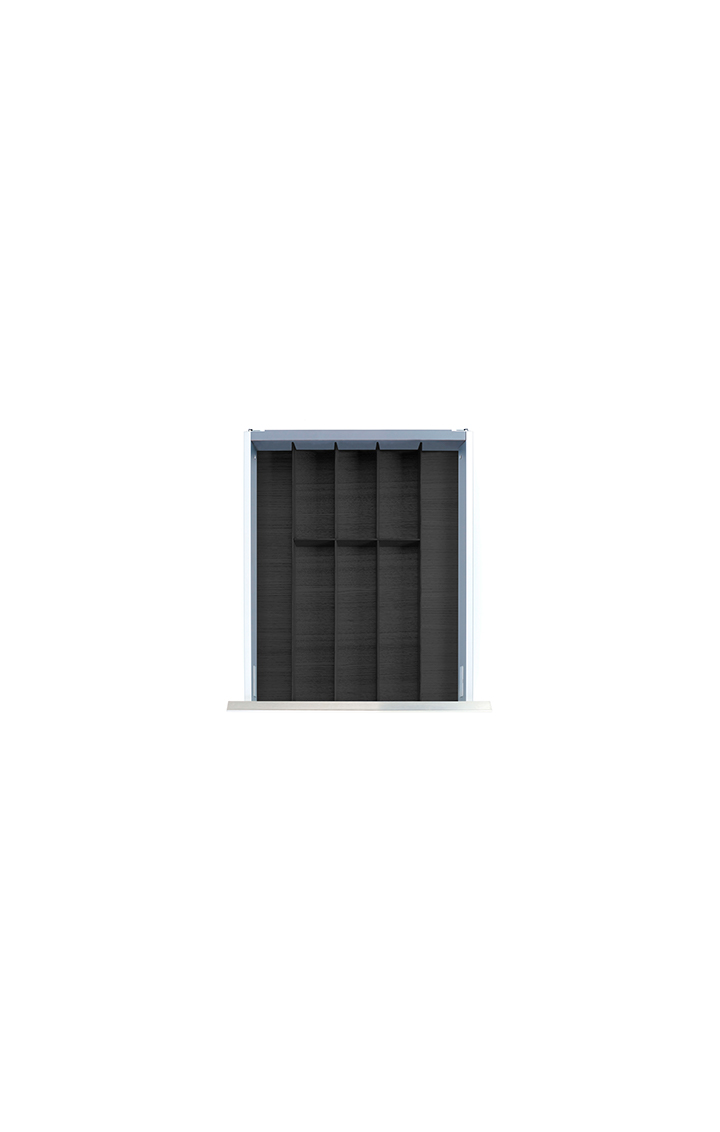 Además, su base de dos piezas garantiza la máxima flexibilidad y un aspecto uniforme dentro del cajón, evitando contrastes de color y asegurando un acabado de alta calidad.