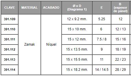 Espesor de panel 12/13mm, 15/16mm, 18/19mm