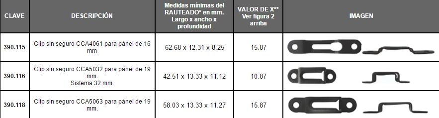 - Cuando se montan los tornillos para fijar el clip dentro del rauteado, deberán de estar bien ajustados, de lo contrario al hacer la instalación se corre el riesgo de romper los páneles especialmente en los clips con el sistema 32 mm.