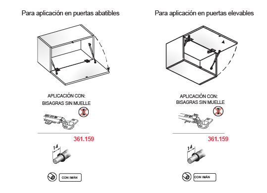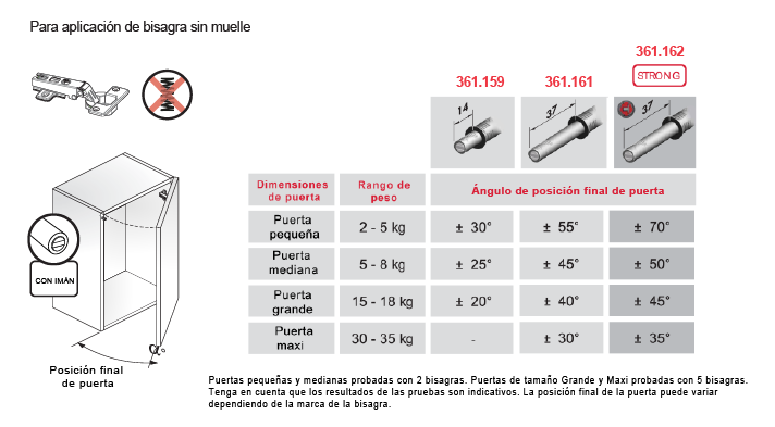 La versión con imán se utiliza para gabinetes con bisagras sin muelle