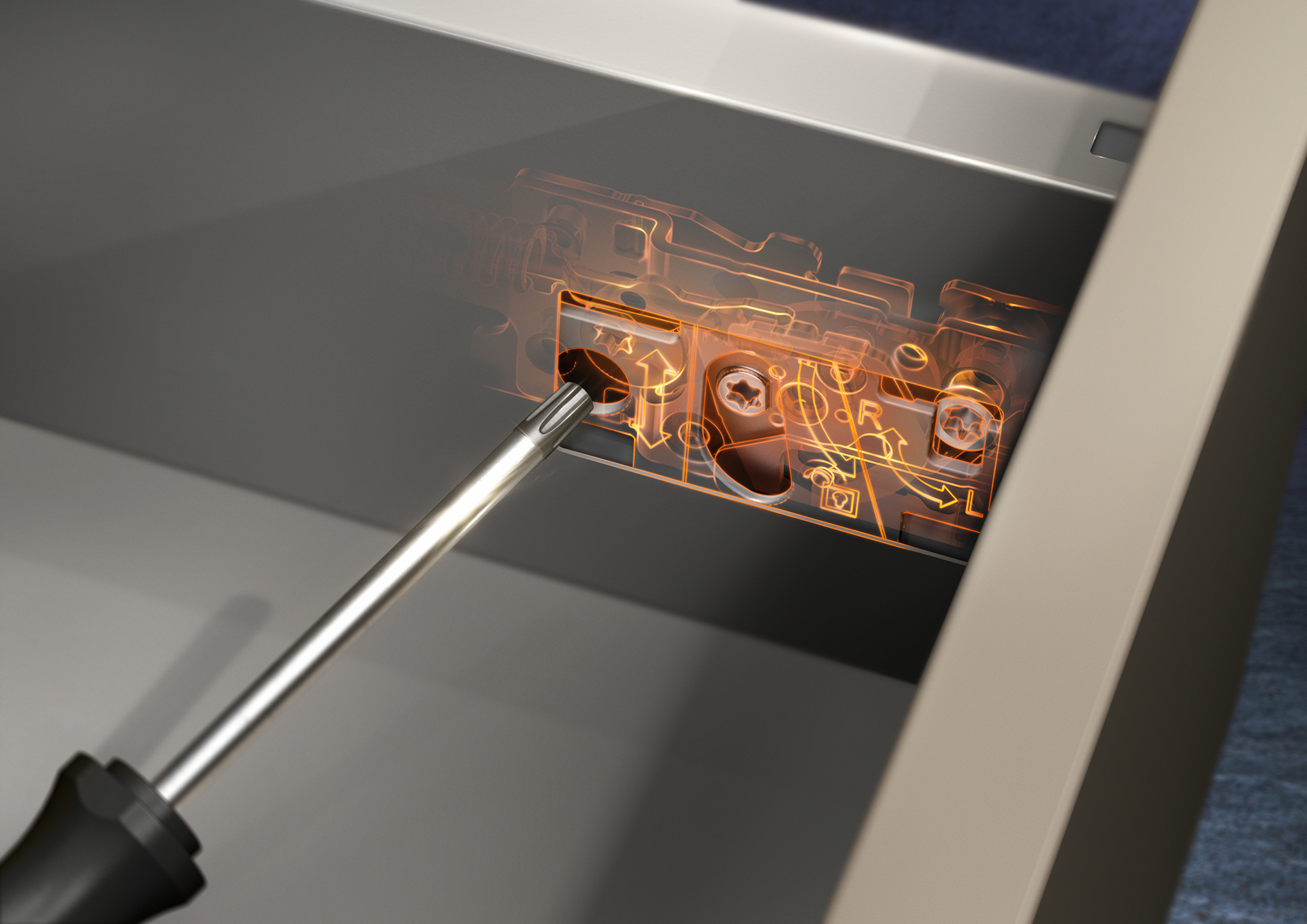 El nuevo sistema box dispone de un sistema de ajuste de la altura, los laterales y la inclinación. Mediante las posibilidades de ajuste precisas, logrará un juego de puerta preciso.
