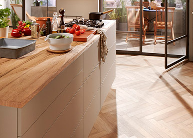 El frente se encastra de fábrica siempre en la misma posición. La posición cero exacta reduce el ajuste al mínimo para un juego de puerta preciso rápido y uniforme en pocos movimientos.