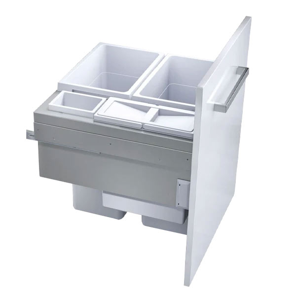 HAILO ofrece una variedad de sistemas que facilitan la separación de la basura, en la cocina de forma inteligente y organizada. Se puede complementar con HAILO Libero, una ayuda de apertura electrónica, para que sea aún más fácil abrir el gabinete (productos relacionados).