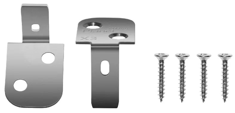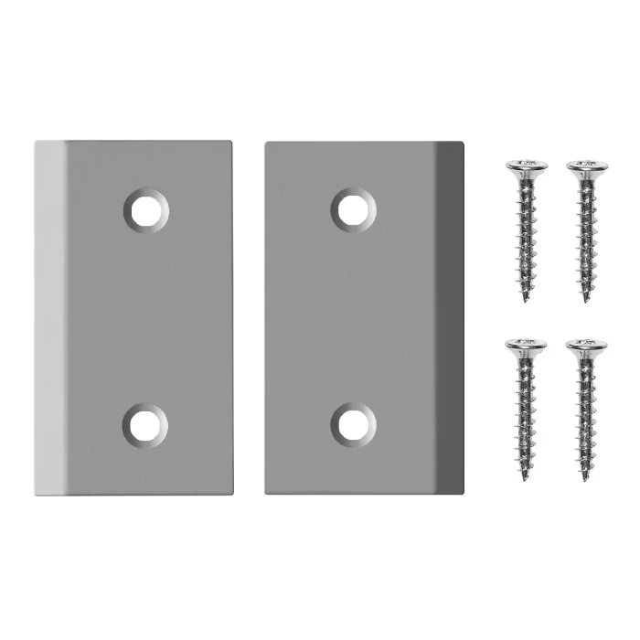 Juego de montaje para puertas de madera con 2 soportes de montaje de acero inoxidable y 4 tornillos.