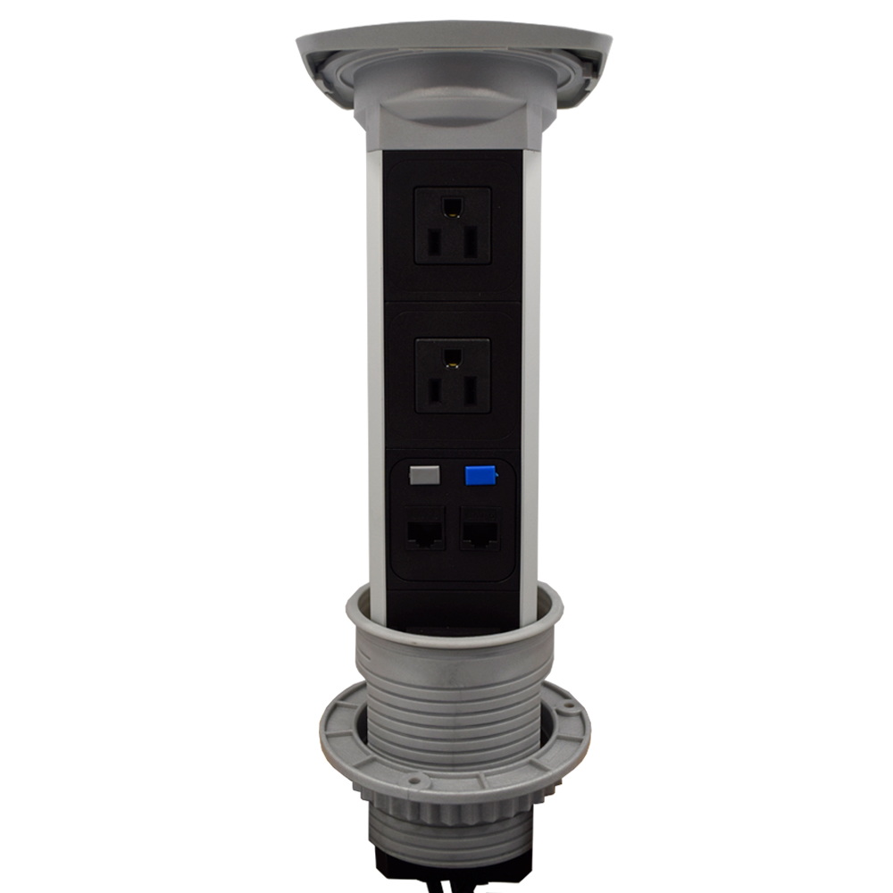 El multicontacto de torre PULL retráctil es la solución tecnológica adecuada, con un sistema oculto para cubiertas de cocina, escritorios ejecutivos o estaciones de trabajo con 2 sockets + 2 puertos ethernet.