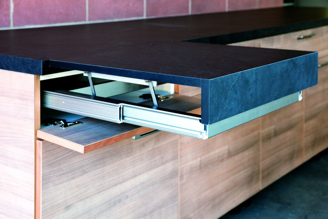 OPLA-TOP es la solución perfecta para tener una mesa retráctil para la preparación de alimentos. Es un sistema que permite extraer una mesa de una unidad de cajón y levantarla a nivel de cubierta.