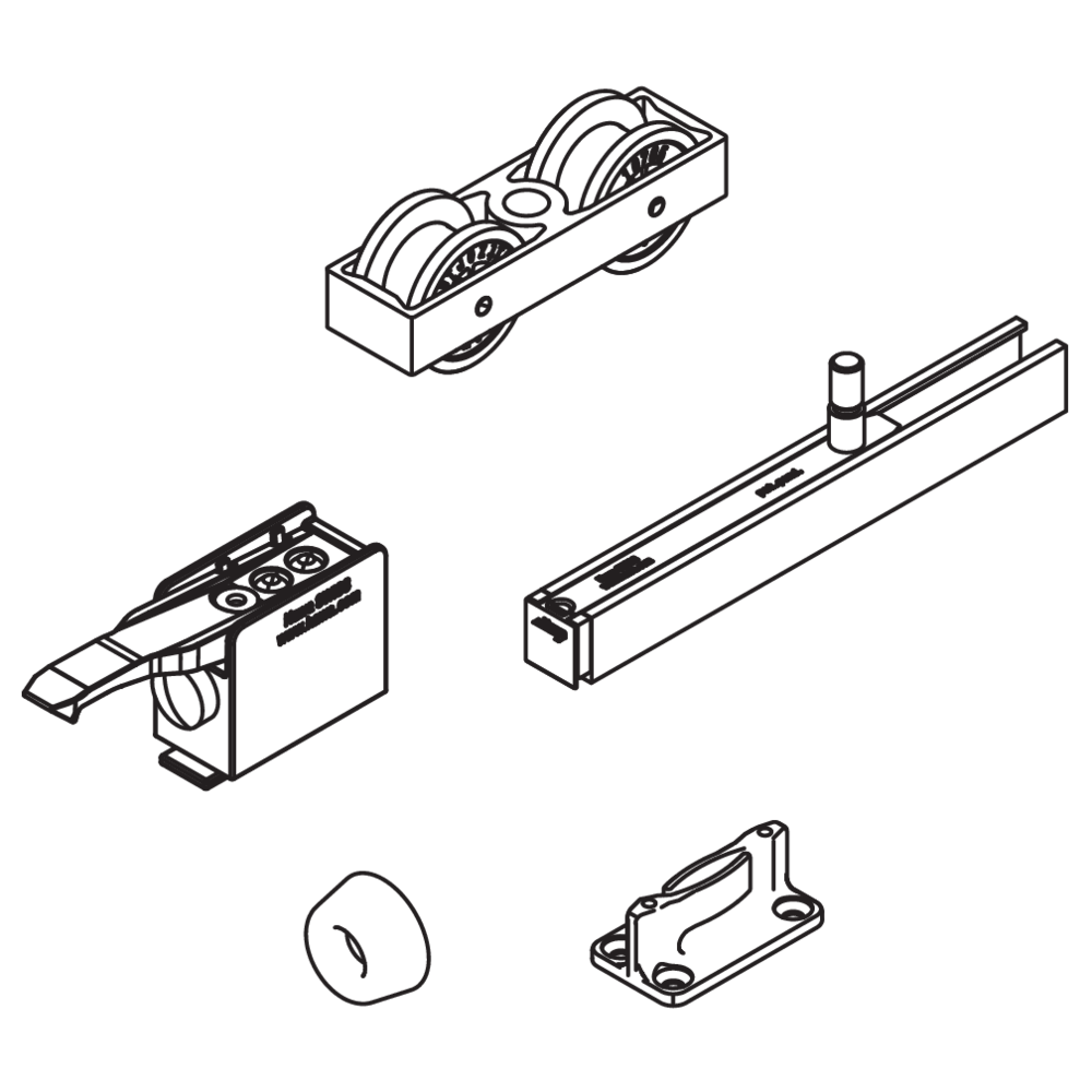 Herraje para instalación de puerta corrediza de madera hasta 80 kg.