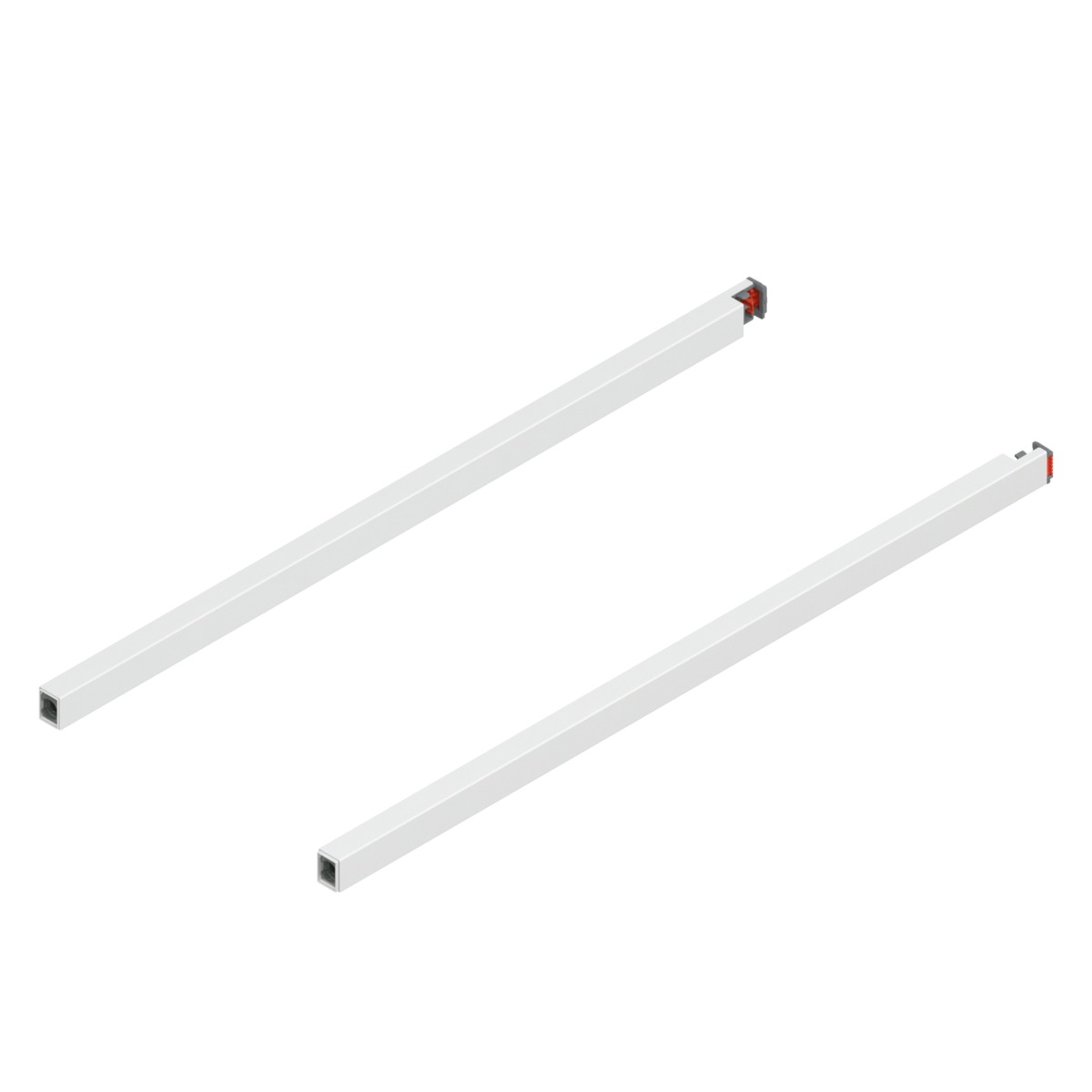 Todos los componentes necesarios para el armado de un cajón MERIVOBOX E acabado blanco seda mate están contenidos en un solo empaque.