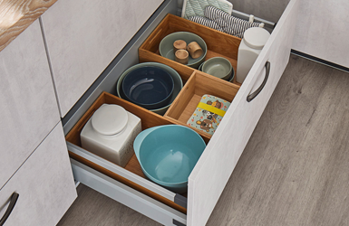 Organizar objetos varios o utensilios dentro del cajón cacerolero, ofreciendo máxima visibilidad y orden.